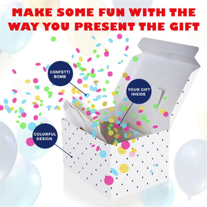 - WOW EFFECT! Once the gift box is opened, confetti pops and sprinkles the recipient.