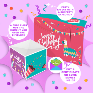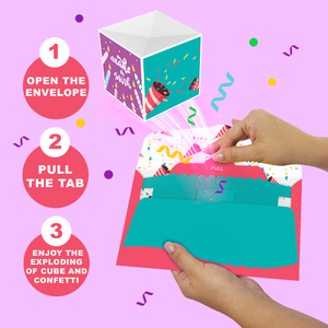 - UNPRECEDENTED SURPRISE: Once the envelope is opened, your chosen card will pop out, taking the form of a cube, and sprinkling the recipient with glitter and confetti!